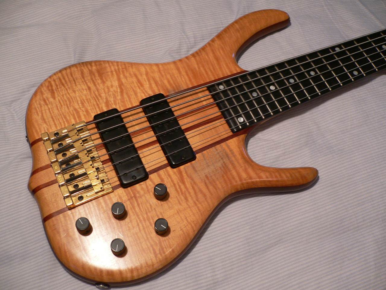 BT 5 MS model with upgraded 3 piece wings of flame/tiger maple top and back and walnut core.