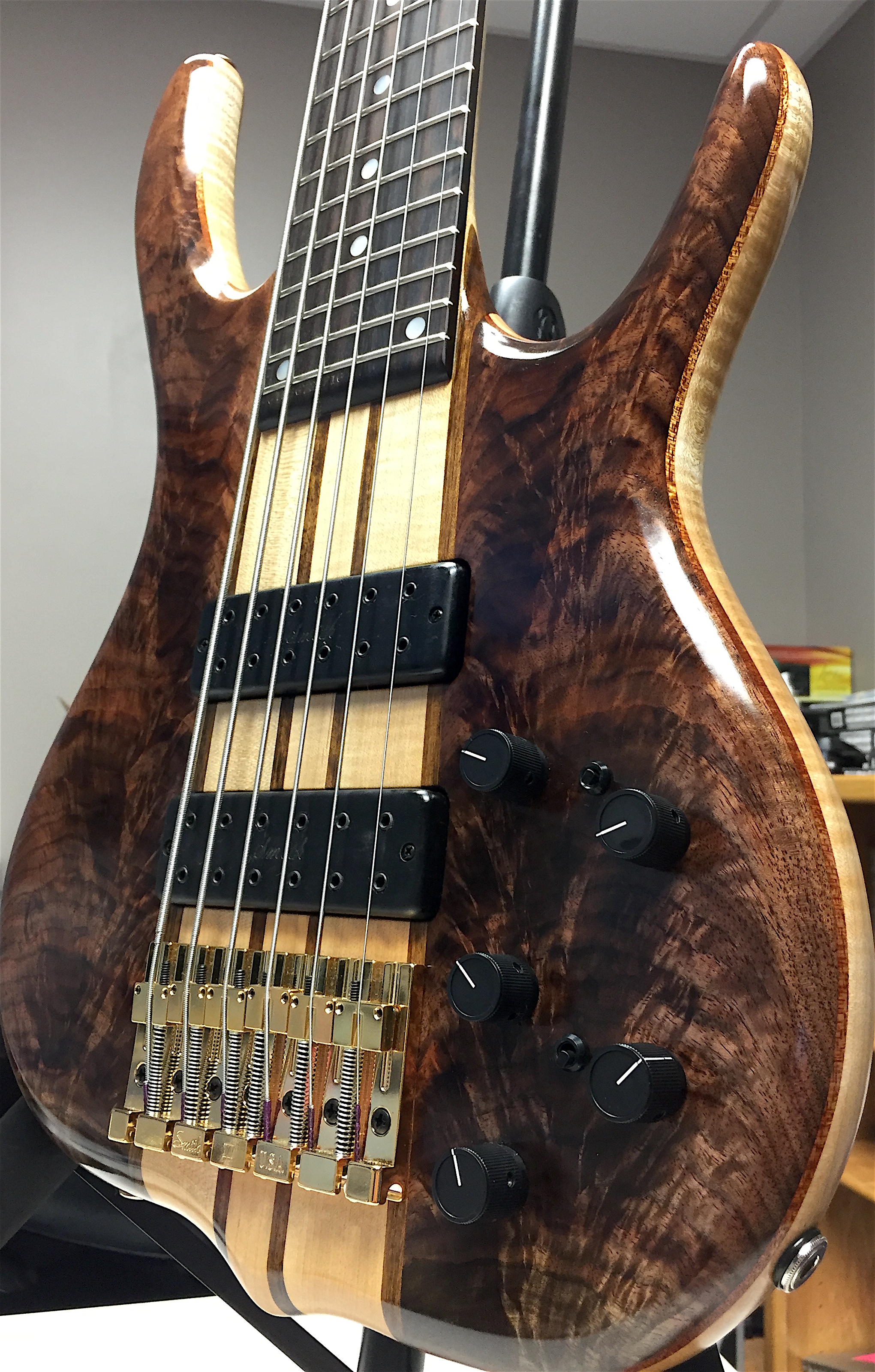 Quilt maple top and back western tiger maple core and walnut veneers ebony finguerdboard wait 25 years to have a ken smith .. I really love this bass !!! thanks Mr. Ken Smith for these bass Attachment 3604 Attachment 3605 Attachment 3606 |