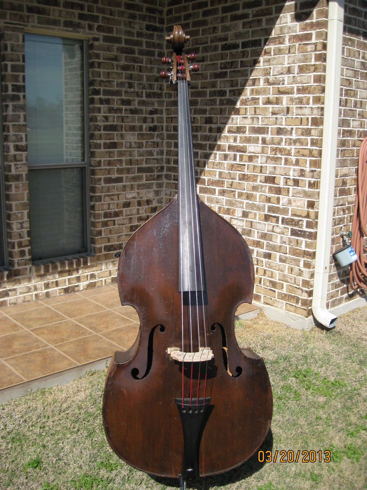 Here are some more pictures of the old bass. I have learned the the previous owner was also a woodworker and turned the hat pegs to replace the ones that were there. At least I'm believing the bass originally had hat peg tuners and the new ones are replacements and not additions.