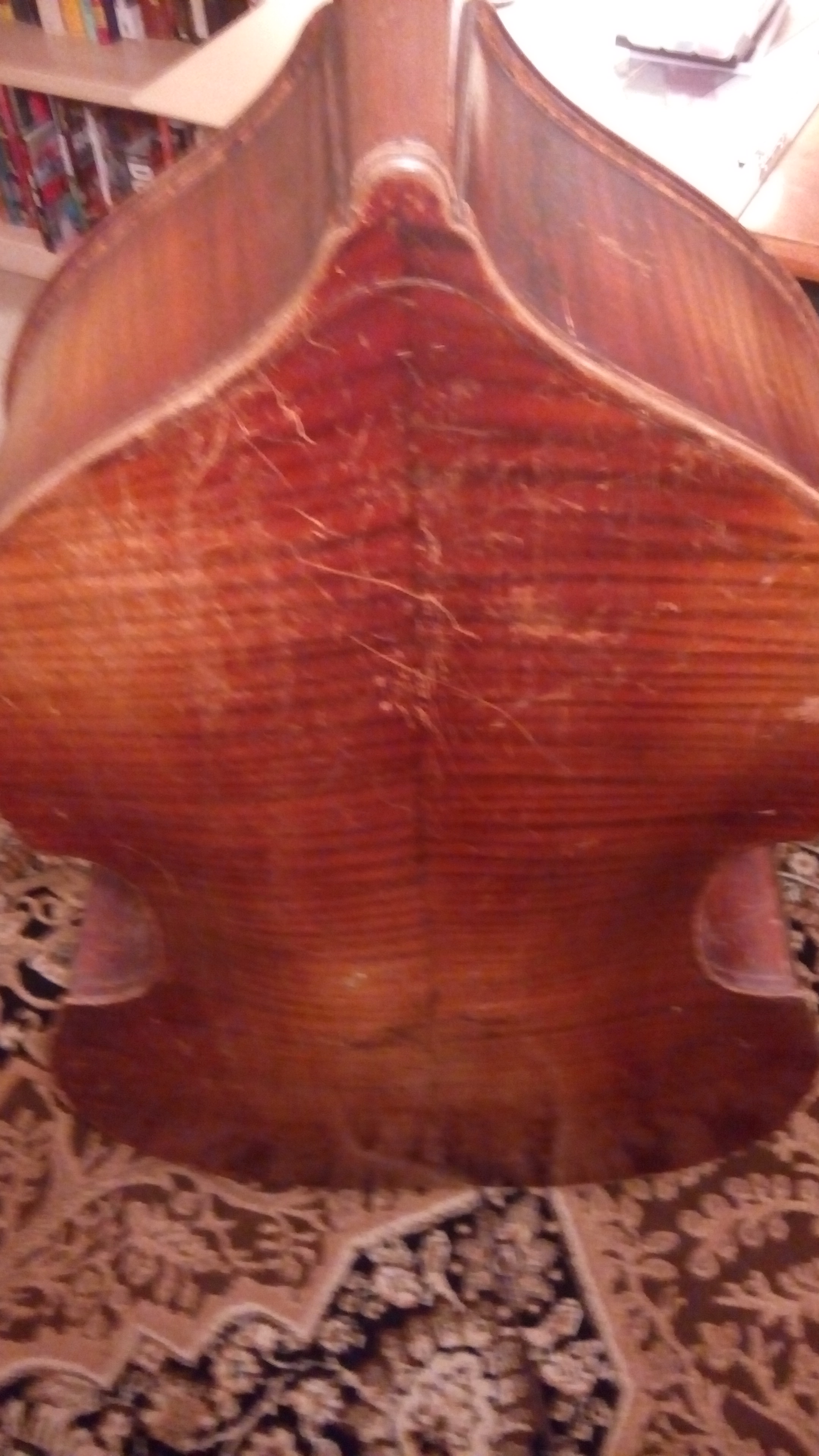 This is Plywood or carved? Can't tell from your pics. The flames might be painted on as I don't see them inside the bass on the back. This is probably made between the two wars. Maybe 1930s. Maybe later. If you don't know anything about it, how do you know it was a good price? The neck is perfect? The set-up is perfect? Some repairs can cost thousands and repairs can often exceed the value of the bass. |