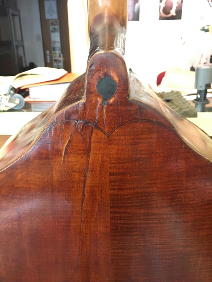 A Luthier in Vienna just sent me pictures of an old Blockless-made bass dated 1790 by one of the Hornsteiner's in Mittenwald. Also, he tells me that this style of making is still being taught there as well. So for me, this is a break thru as it's only the second Label I have ever seen in a Blockless style bass. The first was a Bass I had back in the mid '70s labeled Sebastian Klotz, 1791, also Mittenwald. I never knew if it was real but it was possible. Probably many of these basses were made anonymous for the export trade but also for domestic sale where the labels could have been left in. Also they were made in various grades and sizes from 1/2-4/4 and from plain un-purfled wood to high figured flamed maple with nice grade narrow purfling.