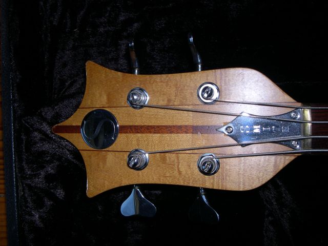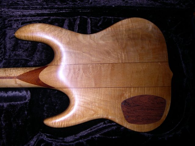 I bought it used back in the late 80's early 90's. It is made of figured maple with mahogany and is stamped "108" on the back of the head stock. It has a Badass bridge, Schaller tuning machines, soapbar pickups, three knobs and two toggle switches, and a rosewood finger board.