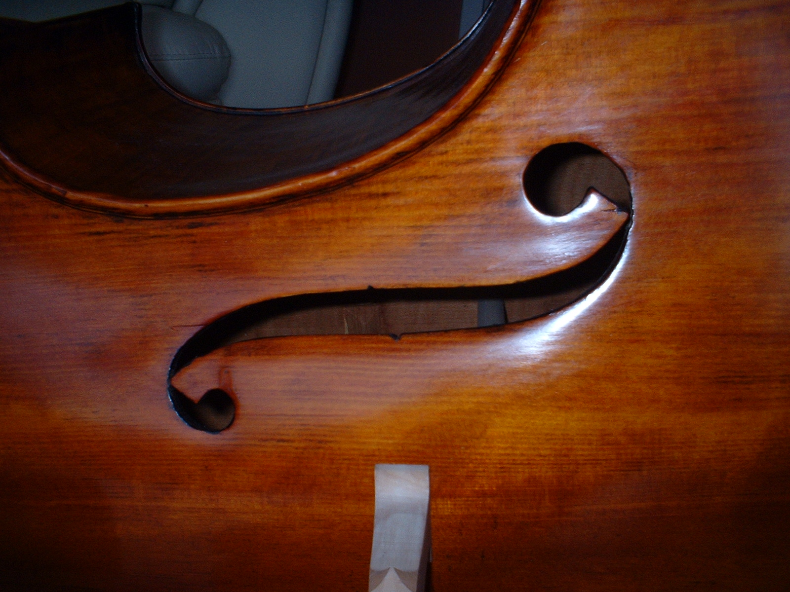 When I bought the bass the dealer told me that the bass had been refinished recently. This shop that I bought the bass from is a reputable shop and has been dealing in Glasgow for a lot of years, and I think that they would have enough experience to spot a fake bass, and Idon’t believe they would try and pass me of a modern fake bass for an old bass