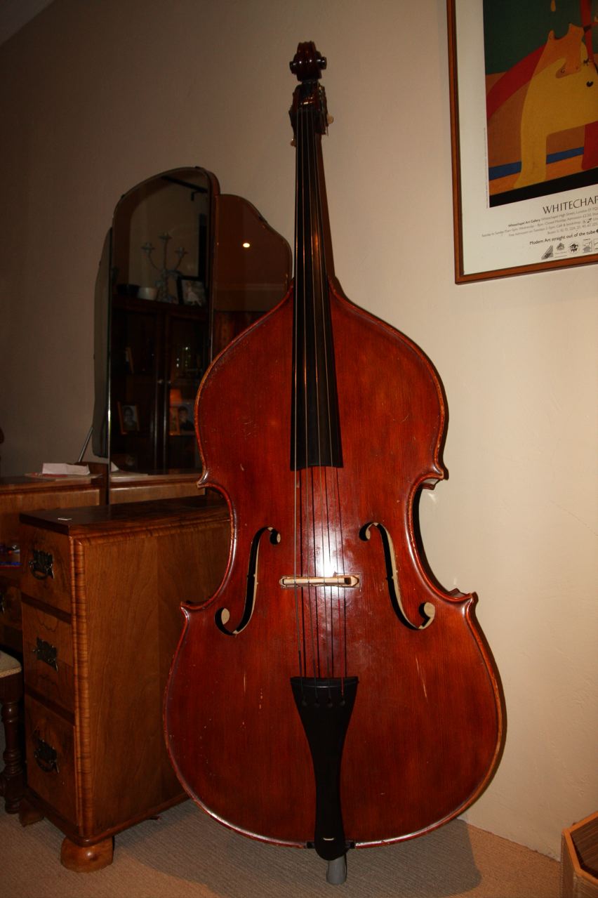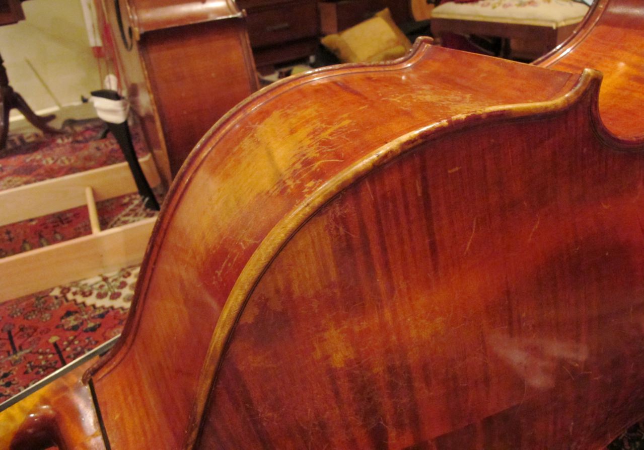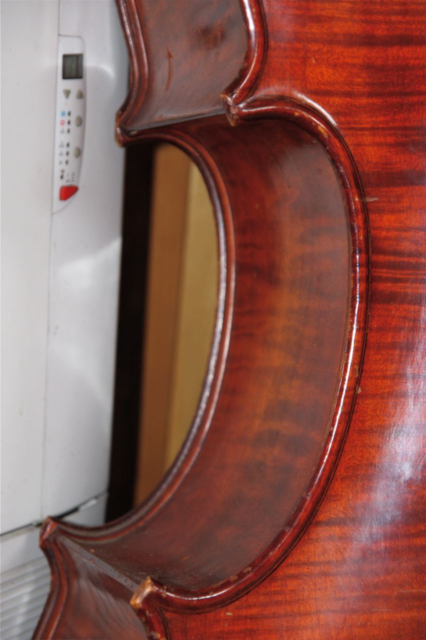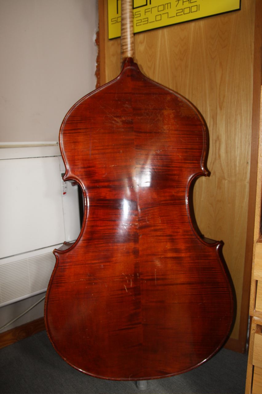 Hi Wayne - managed some pics of the bass / this was the one that had the broken heel toe / and that I had to rebuild the mortise face and sides and realign the neck . She is a full carved german 3/4 and was made in 1970 . You can still see the heel repair line but Ill disguise it when the basses finish is retouched and French polished . This has turned out to be a fantastic bass for jazz and super easy to play