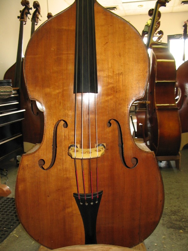 Hi Guys. I have a bass here that I thought I would share. It's an instrument that was used with the Milwaukee symphony for years and then fell into disrepair. Last year we did some restoration type work and it's turned into a very good sounding instrument. I didn't manage to take down any dimensions before I sent it out again but it's large just about everywhere. I remember that the string length is 42 3/8. Any thoughts?