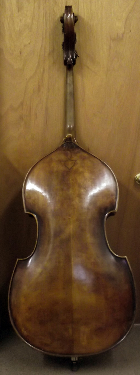 Recently, that same bass came back in thru my shop available for sale so I did what I do now with old basses that I like and bought it! Before I go further, after extensive research trying to find out 'which' Hornsteiner maker or makers were associated with the firm of Neuner-Hornsteiner, I learned that at one point, the Mayor of Mittenwald, not a maker, became a business partner in the firm and added his name Hornsteiner. The Firm was before known by other names such a Gebruder-Neuner, Neuner Co. (?) and possibly others. The maker known by label only as 'Jacobus Hornsteiner' has even the author Javolec puzzled as he has a ? next to his name. This bass looks to me like a large 3/4 1920s-30s (Pre-war) Juzek as made by or supplied by the Wilfer family or one of them as there were a few back then. The design in the upper back is similar but different. A smaller 3/4 model with the same markings showed up for sale last year and seeing that purfled design rang bells in my head. It is kind of a cross between the Pfretzschner and Juzek brand basses. I believe now that the instruments labeled as 'Jacobus Hornsteiner' were actually made in Markneukirchen, Germany near the Czech/German border by Schoenbach, Czechoslovakia (now caled Luby) and not made by any of the Hornsteiner makers or associates in Mittenwald and therefore belong in the German/Czech Shop bass classification. The sound however to my ear is as good or better than most Juzek Gamba shaped Basses I have ever heard. The string length was about 42 1/2" or so, about 1" longer than the 3/4 model that recently appeared. I moved the bridge and sound post about 1/2" or so and have the bass playing at 42" now. I will post pictures soon as time allows. If you know of any of these basses, please come forward. I know Paul Warburton used to play one. |