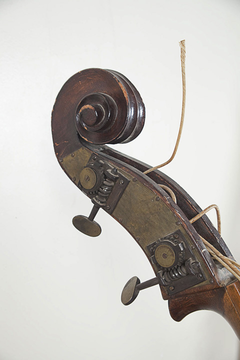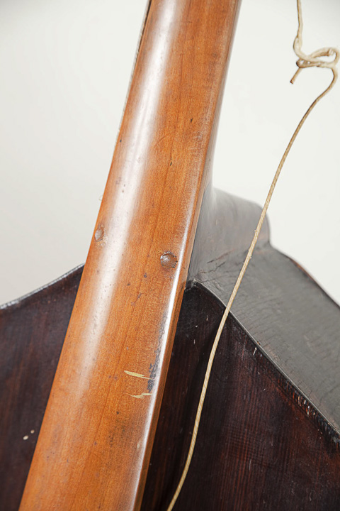 I am writing to find out about this bass I own- and if it is worth restoring. I am mostly a self-taught jazz player, not a classical or chamber player. I would love to get this restored for posterity, and because I am really curious in what it may sound like. I hate to see something like this sitting unused. I've taken it to several luthiers in the Midwest, and have been told by several people that it might be from the 1780-1840s, possibly from the Southern Austria or Northern Italy region. One luthier thought it might be a church bass or Prescott bass, but it doesn't look like any I've seen. And yet another thought it was a 1/2 size bass made for a child in the 19th century. I've even heard bassetto. There are no markings inside or out. I was sold this from an auctioneer. My issue, other than the mystery, is that this instrument is kind of small for me, I'm 6'3" with big hands. The instrument is 60" in full height (not including the chair-leg post), and has a rough scale length of 33-34". And, if I did get it all set up (which would take some months and a lot of money), and I found I didn't use it or found it too hard to play, would I be able to sell it for what I put into it? I'm very curious to hear how it sounds, but if it's too weird to play in Viennese tuning, what the two luthiers think it was tuned in, is there someone out there who might be interested in it? Initially, I'd think I'd restore it as a three-string just to try to maintain the integrity before I go changing it. I play roots music and a little jazz, and am not classically trained. Although I thought putting some gut strings on it and playing some "wolfy" Tom Waits-y kind of stuff with it, or putting steel strings and maybe play some variation on some Ron Carter piccolo bass. Maybe tuned in 5ths or something. Does anyone know any Baroque or chamber instrument groups or forums or someone who might be interested in this? I also saw this link- and they look similar. I did post this on the Talk Bass Forum, as well. More photos to come. Thanks! |