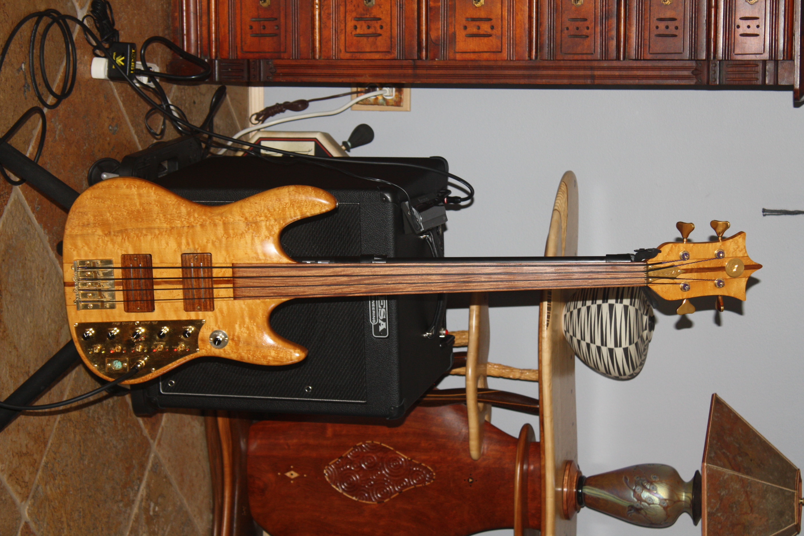 It took about a year, but I finally was able to make Smith #26 mine. I brought it home, leveled the fingerboard, oiled it up, put tape wound strings on it, and set up the action. Another masterpiece from Ken.