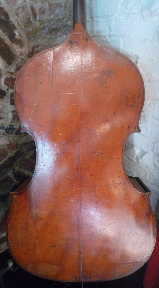 The picture doesn't show it too well, but this is the sort of corner treatment that seems to appear on Forster basses - and that's probably why this one is attributed to Forster - not sure which Forster they're going for though!