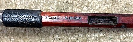 Here is a beautiful 'DeLuccia school' Bass bow by Chesten S. Olsen of Philadelphia. This is one of only 30 Bass bows he made, #3-90 (March, 1990).
