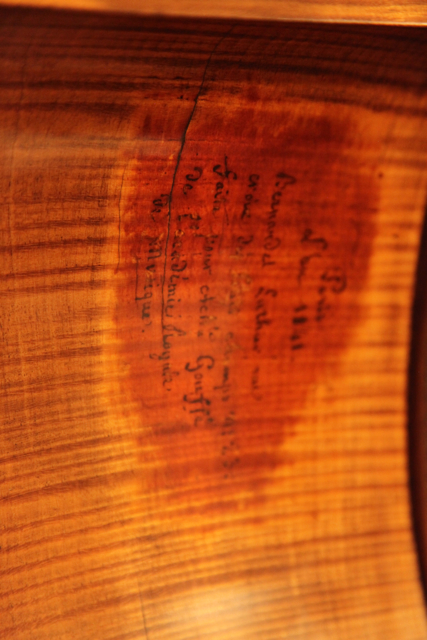 A few months ago, I bougth a french bass which was made for Achille Gouffé in 1841. There is the signature of Bernardel on a rib, and there is inside the bass the signature of Plumerel. It seems that this bass belonged to David Walter, who was teaching in Juilliard School. This is not a Bernardel shape, it looks more italian. The varnish is not original and I can't imagine why a luthier put a new varnish. I imagine that many bass players in USA knew David Walter and I would be happy to learn about him and this bass, if someone knew this bass... Thanks a lot |