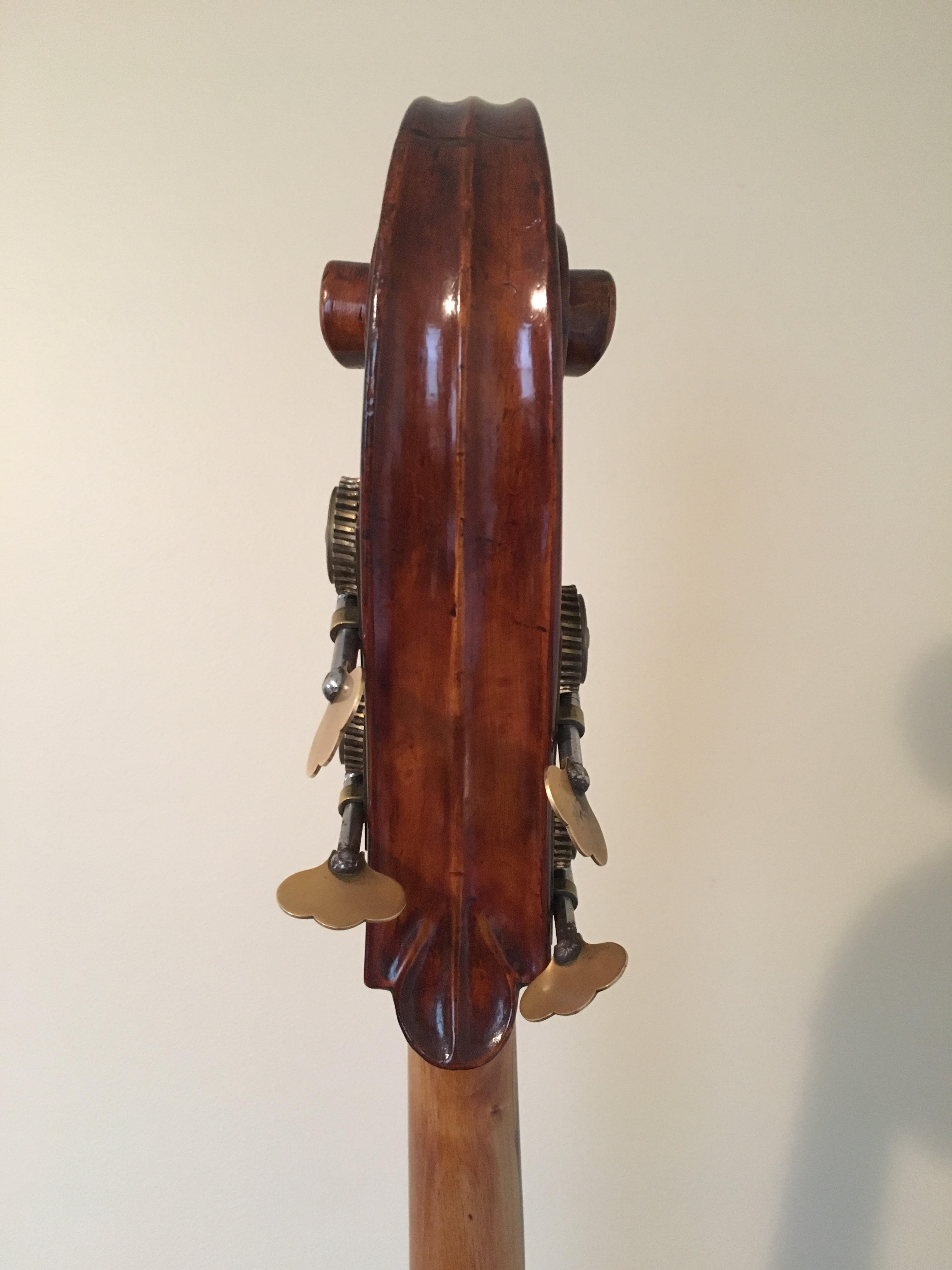 Here's the back of the pegbox. FYI it was originally a 3 stringer but you probably knew that.