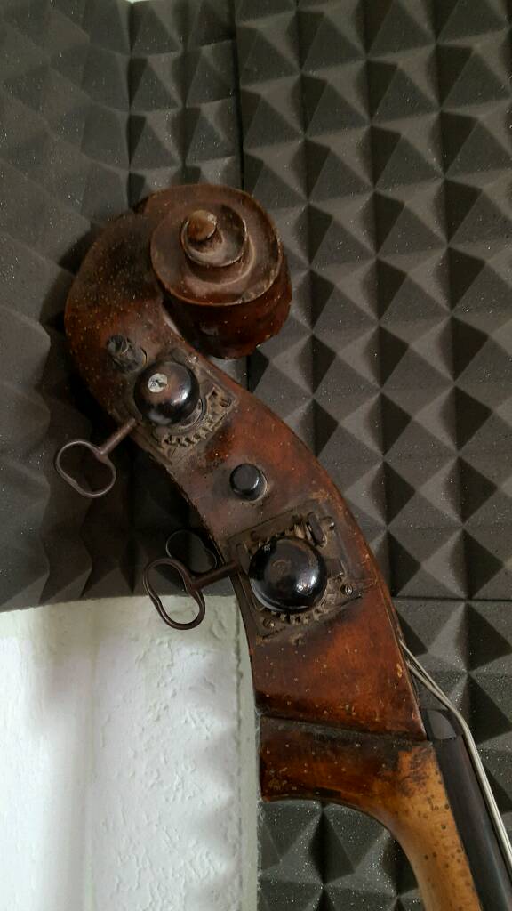 Could also be a Spanish bass as the Pegbox looks like it was done by a Guitar maker. The Neck is Worm eaten as well. The Back is very thin also. This will be an expensive bass to restore. Top off, new Neck block, New Neck/Graft? If you keep that Head which is weak with the open back. And what ever work the Top and Back needs as well once opened up. Keep the pictures and look for a better, more healthy bass. This Bass more then likely will cost more to restore than its final value when all done. |