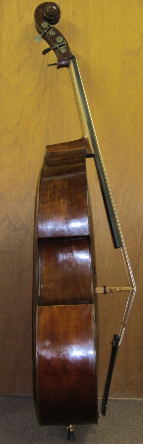 Here we have a beautiful old turn of the century French bass from the shop of Paul Mangenot, pupil and successor to Justin Derazey. Although unlabelled, I have seen at lest one other labelled and a few others that were not. All of them have the same distinct look from the model, wood and varnish. This bass is in fine restored condition and has a modern set-up with new fingerboard, bridge, soundpost and endpin unit. The Top is Spruce. The Back, Ribs and Neck/Scroll are Beechwood. All parts including the Gears and Varnish are Original.