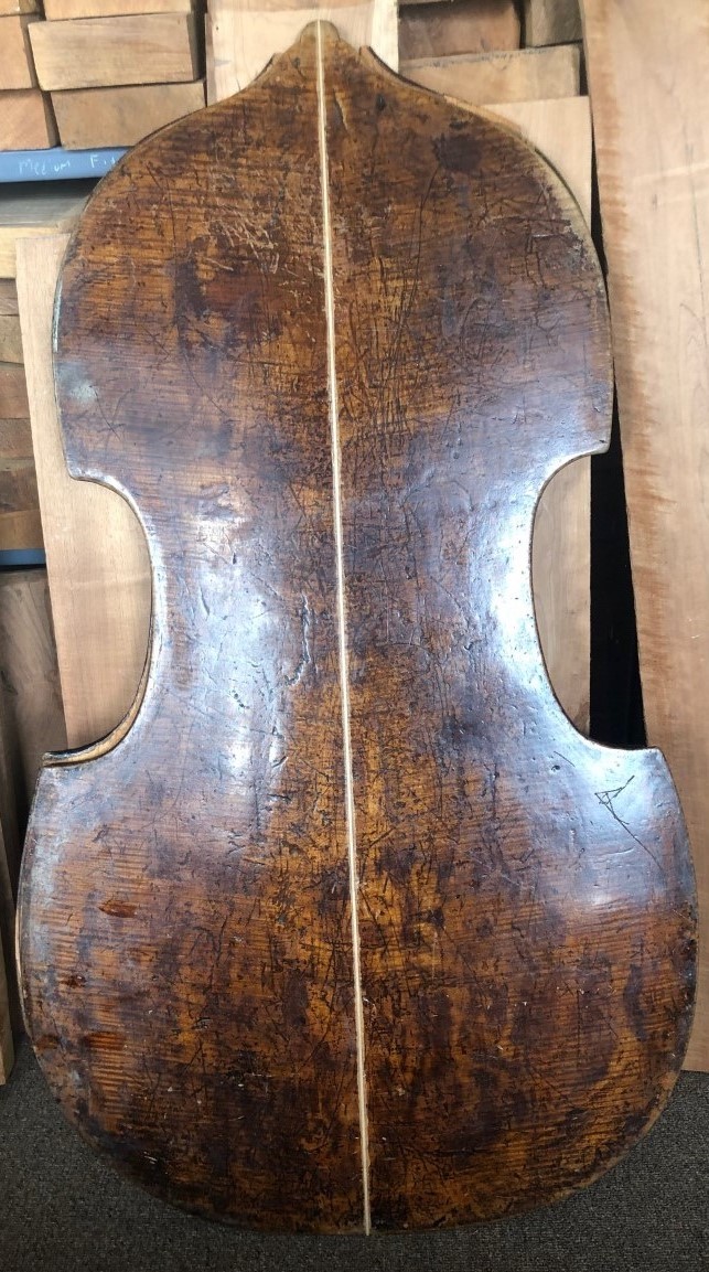 Measurements to be added at a later date. Not currently for sale. All parts including the Scroll and Varnish are original. Pictures will be updated when the restoration is complete. Partial Estimated Measurements: String Length; 41.5" Back Length; 44.5" back Upper Bout; 20.55" Middle Bout; 14.3" Lower Bout; 26.6"