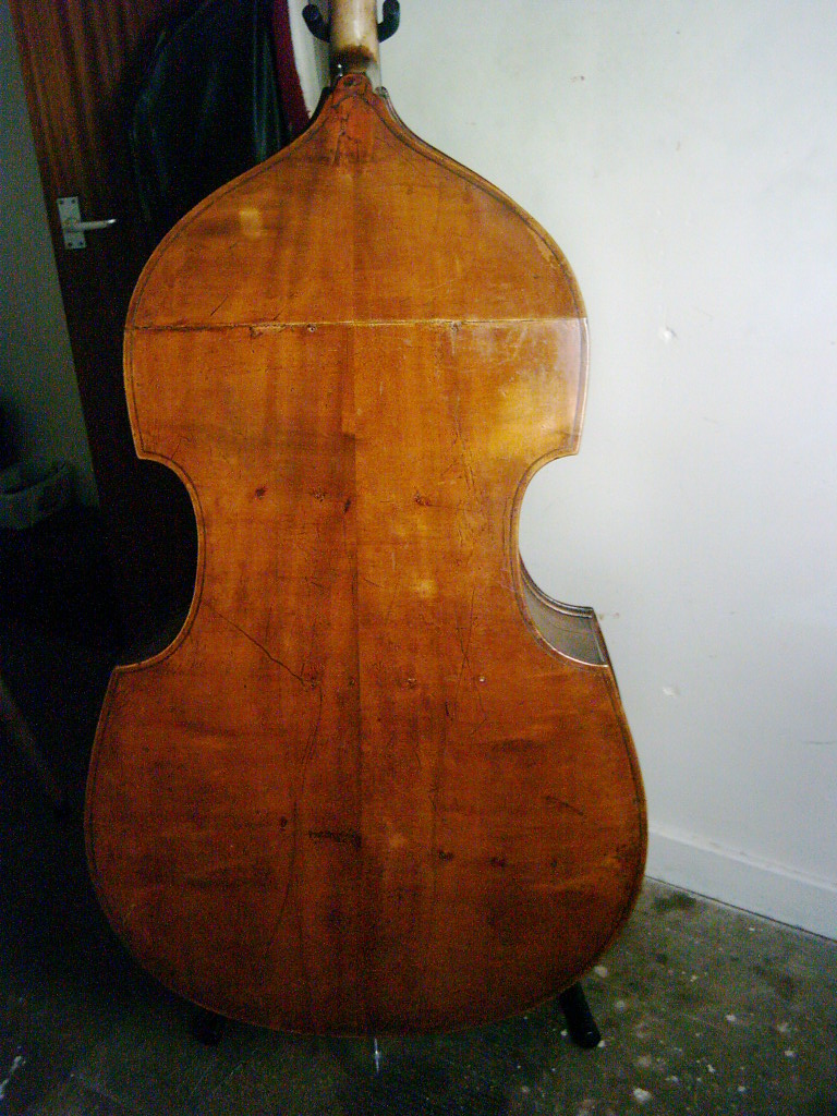 It's a pretty overgrown bass, with a back length of 116 cm and a normal string stop of 110, although it has been shortened to 108 via a big bridge cheat.