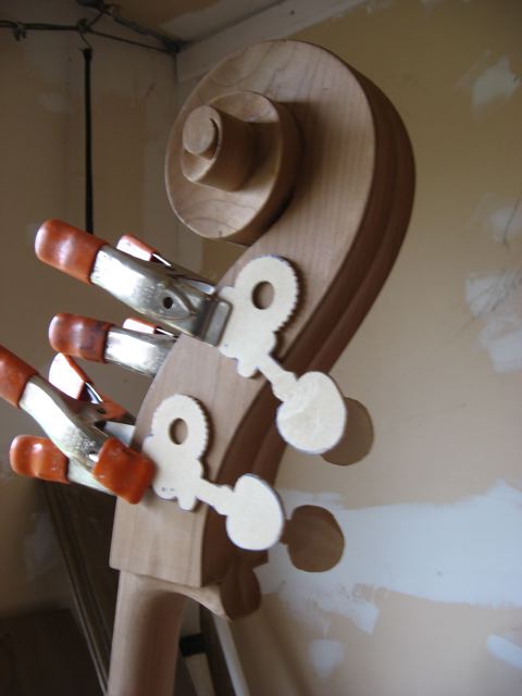 I am about to drill a bunch of holes into the pegbox for tuning gears.