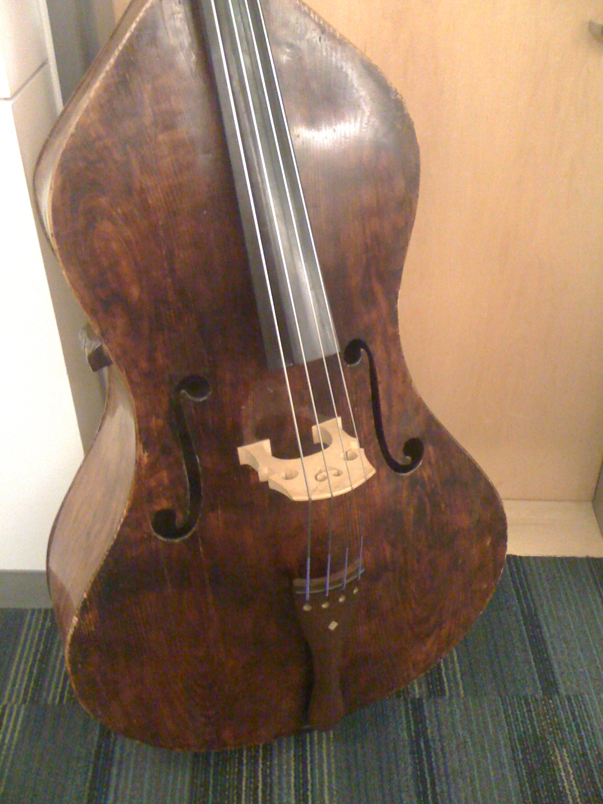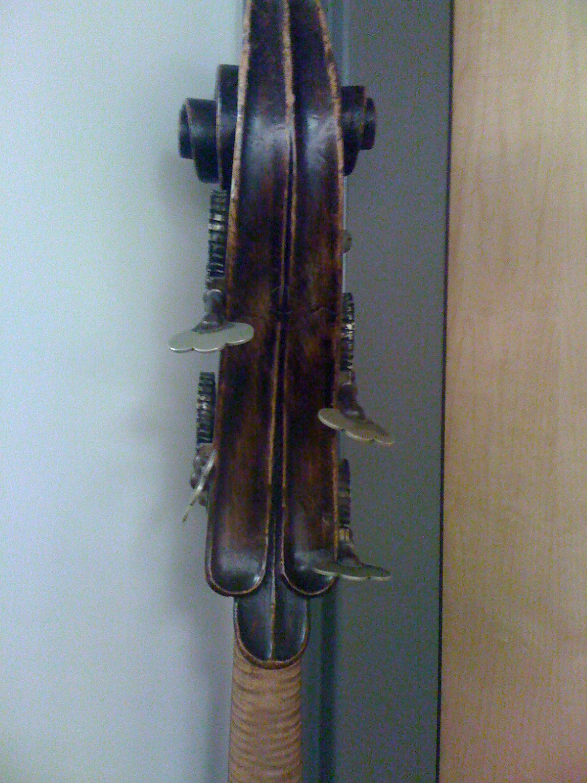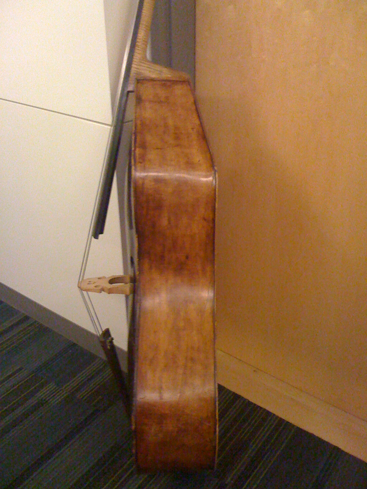 Baldontoni is a fairly specific maker with his basses. I have seen pics of only one that was not a Guitar model. My bass although known to many over the years as a Storioni is probably just loosely attributed to him because of the Elgar book. Some agree it is and some say not. It's a fantastic bass so it doesn't really matter. Someone great made it and one day we might know who. On your bass, it looks like a few others I have seen in that it is simple and nondescript in its features. Look thru all the cornerless basses in my thread and compare. I am going to move this to the Italian Bass section where it belongs.. If you want it added to the Cornerless Thread of mine, just ask otherwise it will stand on its own in good company. |