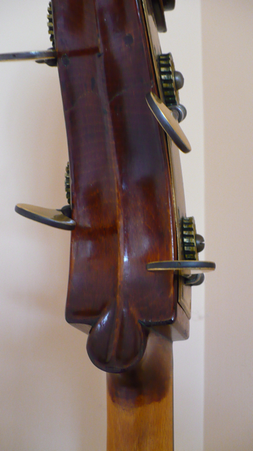 By the way, you can see where the scroll was plugged inside probably having hat peg tuners originally.
