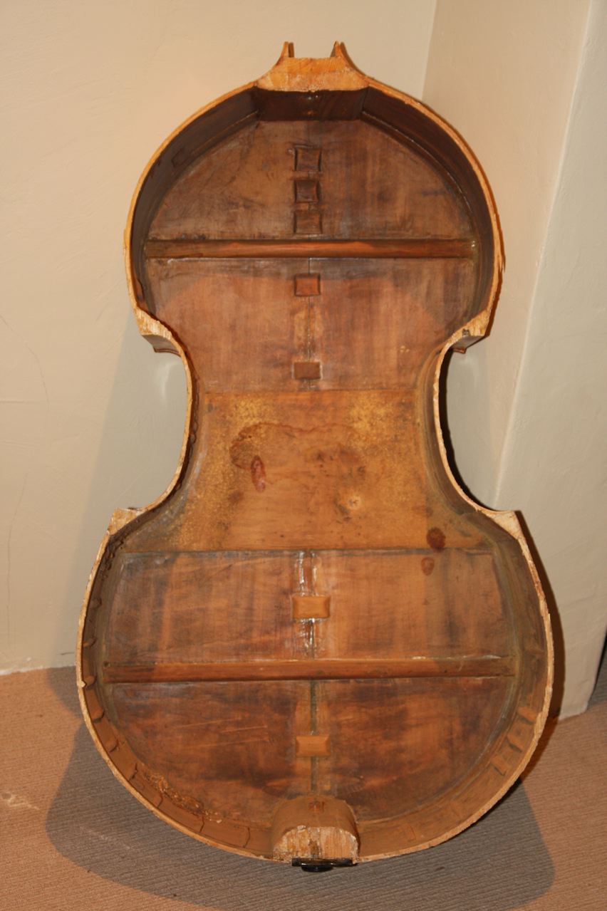 When fetching my bass I asked where the neck came from and was shown this body/to cut a long story short a bought the body for about $100 . What is intriguing is that this bass has been worked on by a number of people over the years , the original finish looks to be gone but the inside of the bass looks to be pretty old ?? I have no idea how to judge this instrument as the outside varnish is new but something tells me that that this may have been a good instrument . Ill include pics of the actual scroll that was on the bass , its actually quite nicely carved. Ok Ken , do your worst !! ![]() |