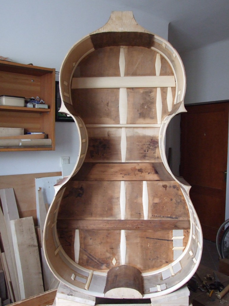 Now, it is all together as a Bass and will live longer in its re-build than it had in the past as a bass. The form is simple and beautiful. The Scroll is modest but mature looking. I would love to know who the original maker was. |