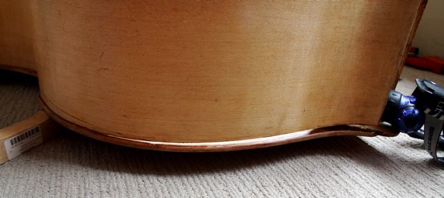 When I clamp the back plate on, the plate will have to bend to meet the ribs on the upper bout seeing that the back plate inside edging is ruler flat.The widest part of the gap is about 20mm.