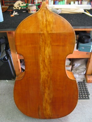 Blockless neck and integral bass bar. Beech neck, maple back and sides. It looks well made, unlike a lot of the German blockless basses I've seen.