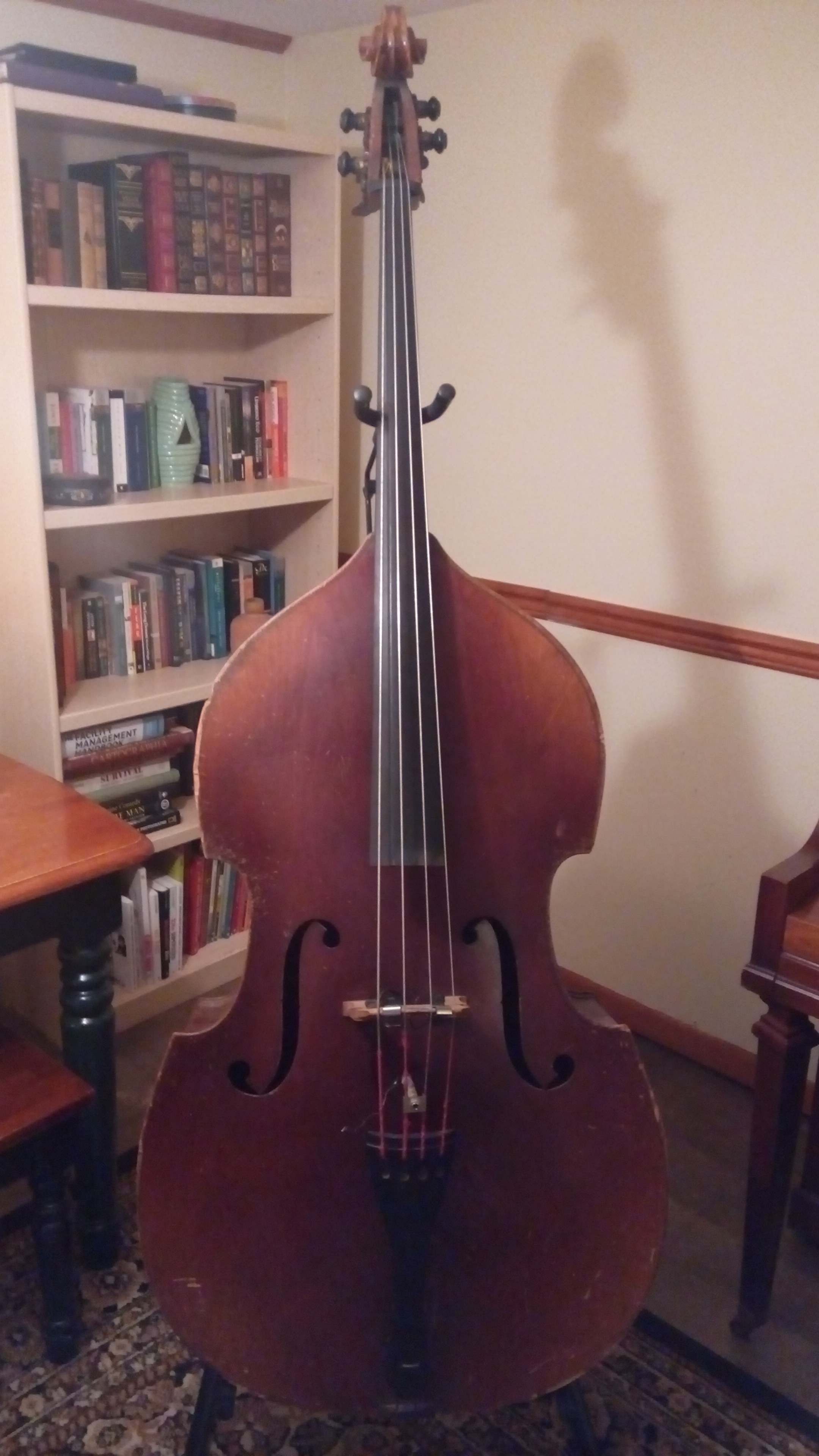 Hi, I had purchased this bass for a very good price and I really can't find out too much about it. I would love if you could maybe tell me some more info. It's in pretty rough condition so I'm thinking it's fairly old. The label on the inside is a fake Stradt label that says "made in Czechoslovakia", but stamped over it faintly is "Made in Germany." Thanks for your time!