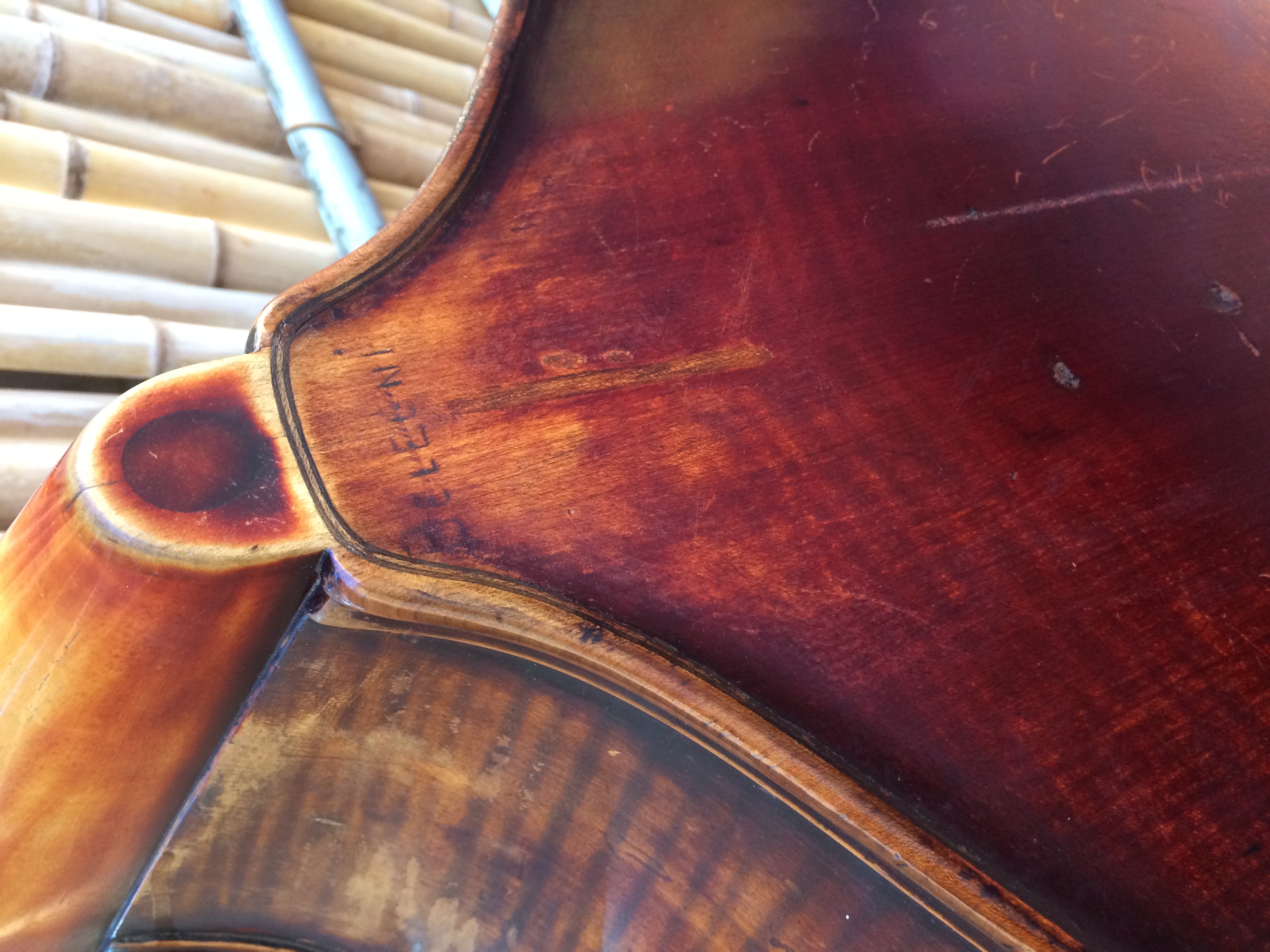 on the neck button it says "Belegni", but I'm guessing that's the name of the luthier who did the restoration here in Buenos Aires, Argentina, many decades ago.....we have tons of Italian sur-names in this city, about 30/40% of the population have Italian ancestors
