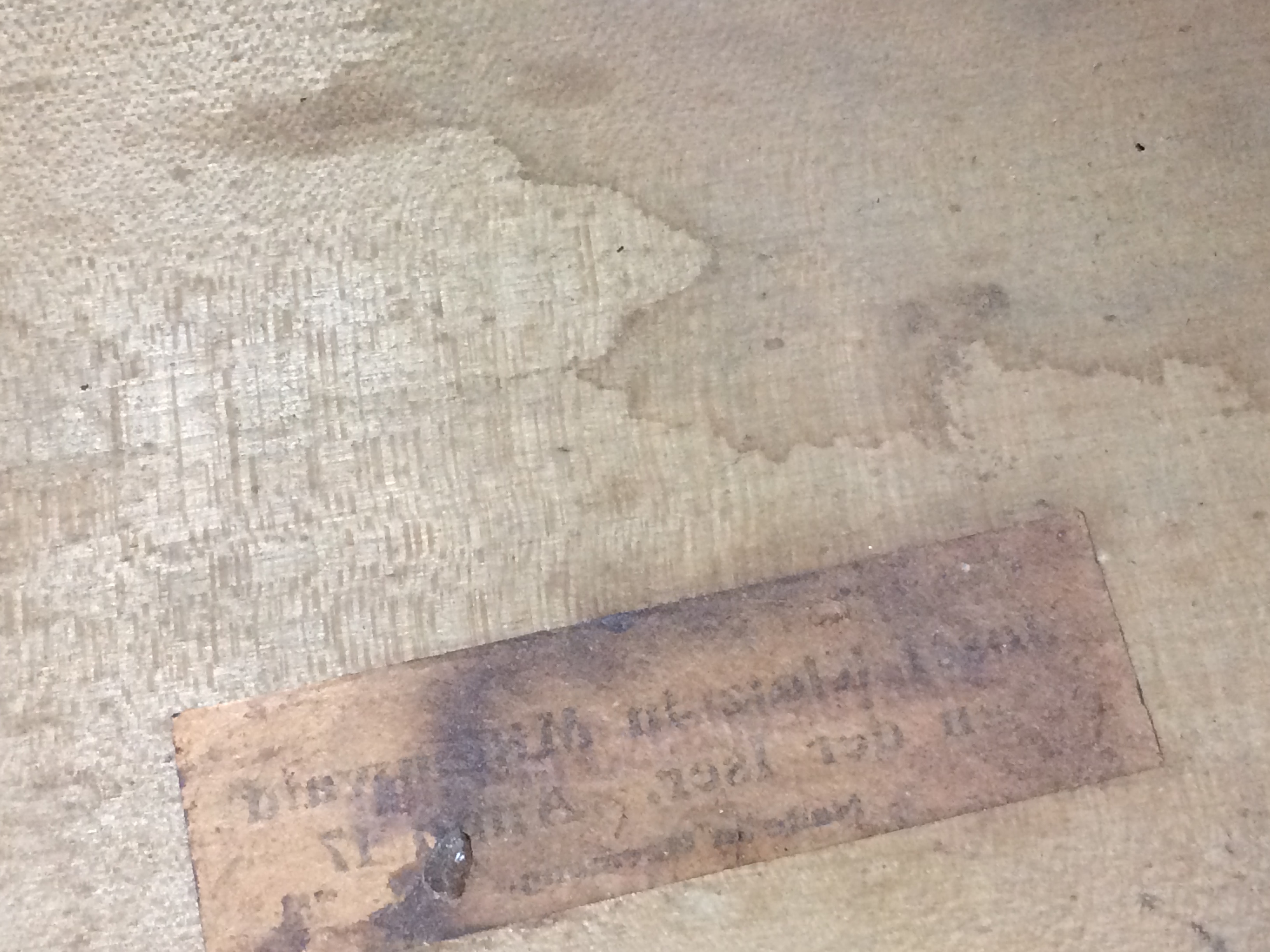 there is a label inside, but I can't seem to make anything of the washed out text....it seems that the text is inverted, somehow, but no clue as to what it says, really.....attaching a few pics of it