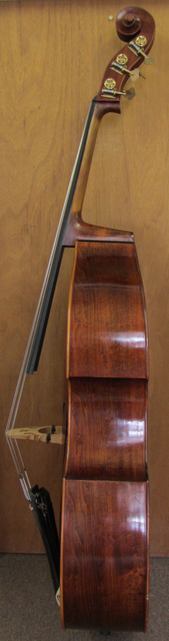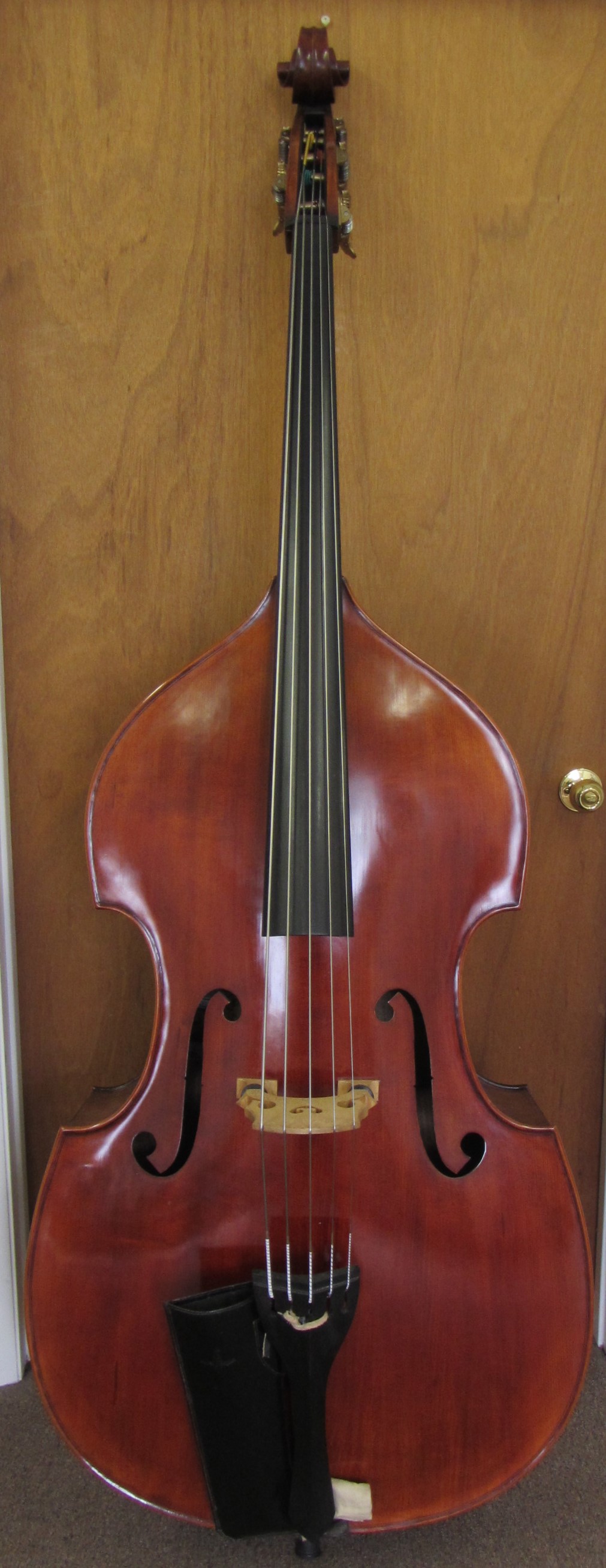 I originally bought this bass for personal use but have since decided to stay with my 4-String with C-Extension for my own comfort. Measurements: String Length; 42" Top; 45.5" Back; 47" at the button Upper Bout; 21" Middle Bout; 15" Lower Bout; 27" Ribs (not including plates); 8.5"/Block, tapering to 6.5"/Neck. Top is Spruce. Back and sides, Willow. Neck is Maple with Ebony Fingerboard. String Spacing is normal width, about 26.5-27mm centered. ~ SOLD ~ |