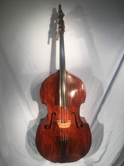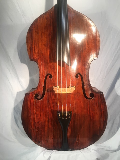 (Original web page with updated pics) http://www.kensmithbasses.com/double.../tyrolean.html Restoration by Mike Magee completed August, 2019. Repairs includes a Neck Graft, Neck Block, new Tail Block, Top re-arching repaired, half edged, full Rib repairs and Back fully restored with all new bracing and half edging as well. Matching Purfling made and replaced as needed and the 19th century Tuning gears repaired and re-mounted along with a custom fit English extension machine on an handmade Ebony board. New Ebony Fingerboard, bridge with adjusters, new sound post and endpin tops off this massive 'back-to-life' restoration. "Thank you Mike Magee" String Length; 41 1/8" Top/Back Length; 43" top, 43 3/4" back Upper Bout; 21 1/4" Middle Bout; 14 7/8" Lower Bout; 25 3/4" Ribs; 8 1/4" to 6 3/4" at neck (SOLD) |