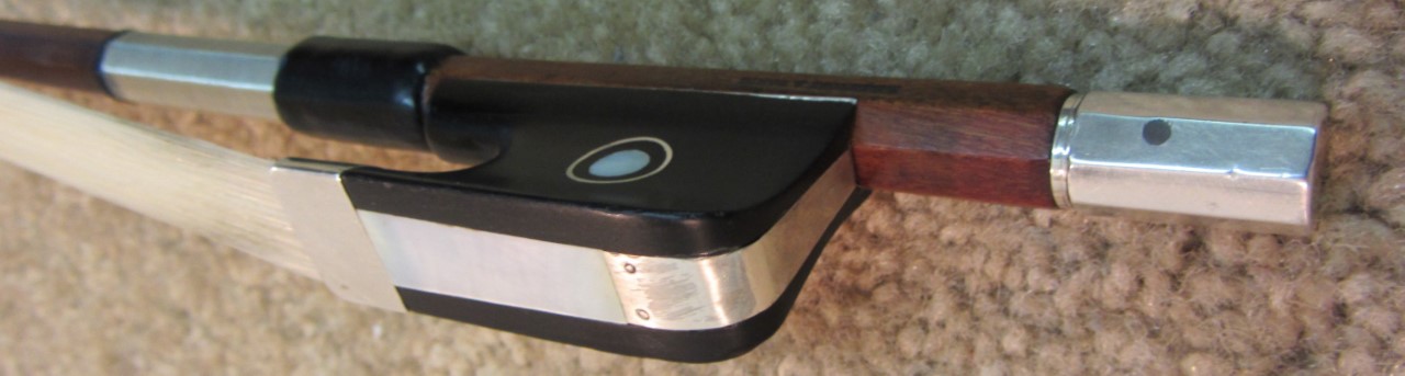 ![]() I recently bought a beautiful French bow stamped "E.Sartory A Paris" but is considered to have been made by Morizot (or Gillet depending on the source). It's 135 grams and the playing hair length is 21". This is my new personal main bow for the upcoming season.