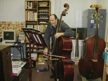 One was taken with me and the Martini some years ago by a visitor from Japan, my distributor Hajime. The other was taken last year for my Orchestra for something which was never used. That is the Panormo I am holding but you can only see the Scroll area of the Bass.