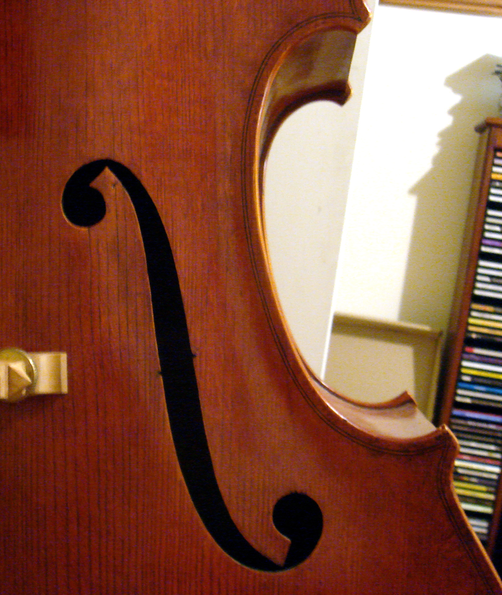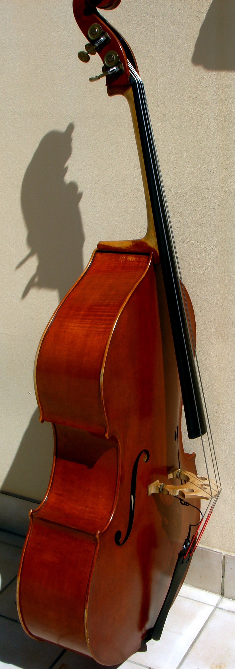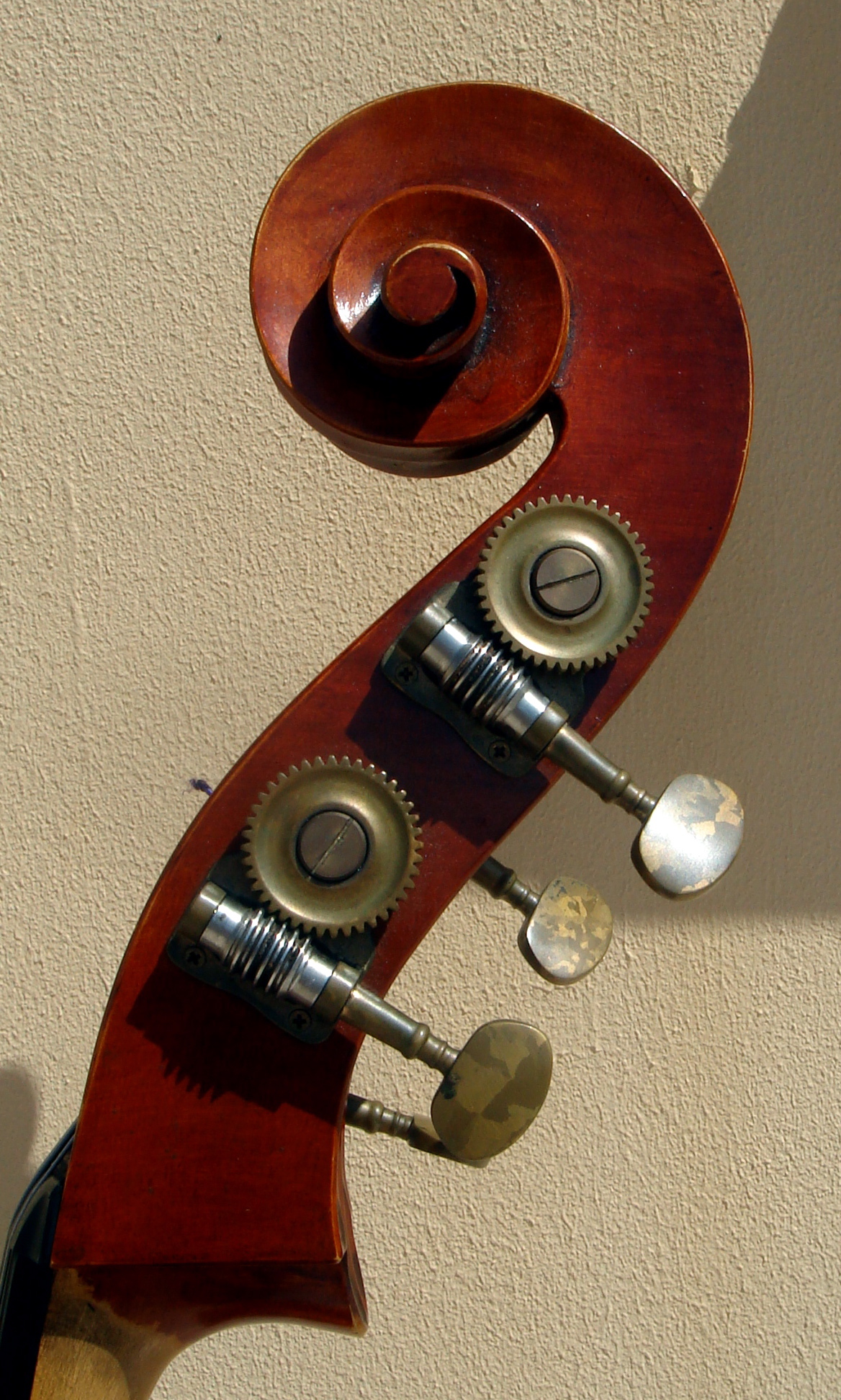 That's a nice-looking bass, David. Looks like it is modeled after the French basses of the late 1800's. Wow, those are long f-holes. Could you measure their length for us? Also, are those tuners available to makers in the northern hemisphere?