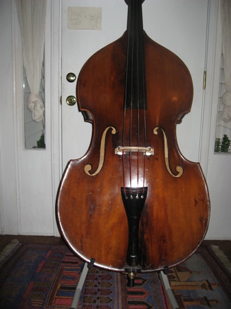 I went back to a local bassist who always has a few basses for sale specifically to look at a Jaeger that I had previously declined, mostly because his price had come down. The Jaeger was a nice bass, but then I saw an older gamba with hat-peg tuners and I asked what it was. "Just an old German shop bass - you can try it if you want." This bass was clearly much louder and present than the Jaeger. I left that day without a bass, but thinking about it. Finally last week I went back and took it out on trial for a week, knowing that I'd get to play it in two different sections, once as principal, once in the middle of the section. I also had a chance to record with it (demo only) with my acoustic duo. This German bass sailed through its trials with flying colors.