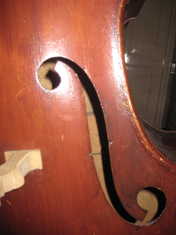![]() Another thing I find quite often are uneven set ff-holes and/or f-notches. The same reasons as above apply here as well. The fact that a bass is perfectly even or way off to the naked eye has no bearing on the sound or quality of the bass. It may have a slight bearing on the makers detail or finishing work but I have seen some of the least beautiful and/or uniform old basses that sound amazing. Try overlooking these factors when evaluating a bass. These 'even Steven' details are more for the Judges at a makers competition than a playing Gig or audition. If the unevenness somewhere makes the bass hard to play, then and only then does it become an issue. At that point, if you like the bass, try working around it. I have seen players get up on their toes to play over the fingerboard with some high shouldered basses. Sure, low, even sloped shoulders are more fun to play over and may cut down the stretch or work to play it but if it's the sound you are after, get some high heel sneakers! ![]() |