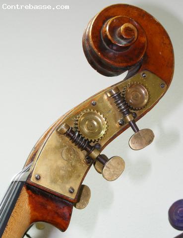 He wanted a picture of the other side of this Scroll/pegbox to look at the D-string tuner mounting to compare to his French bass..