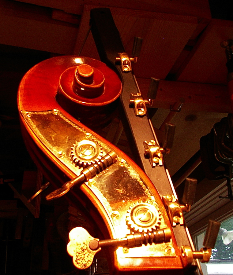 Ok, separate subject here. Your Bass looks to have the German type hatpegs. Two of the Bassists in the Philly Orchestra (Robinson and Rosengard) have hatpegs on their Italian Basses with Chromatic Extensions by I think Robertson's which are very similar to the ones I have by Arnold. BUT, their Basses have the Italian style Hatpegs which do not stick out as much as the German ones. I have the Italian ones on one of my Italian Basses now in restoration. Look at the pics below to compare.