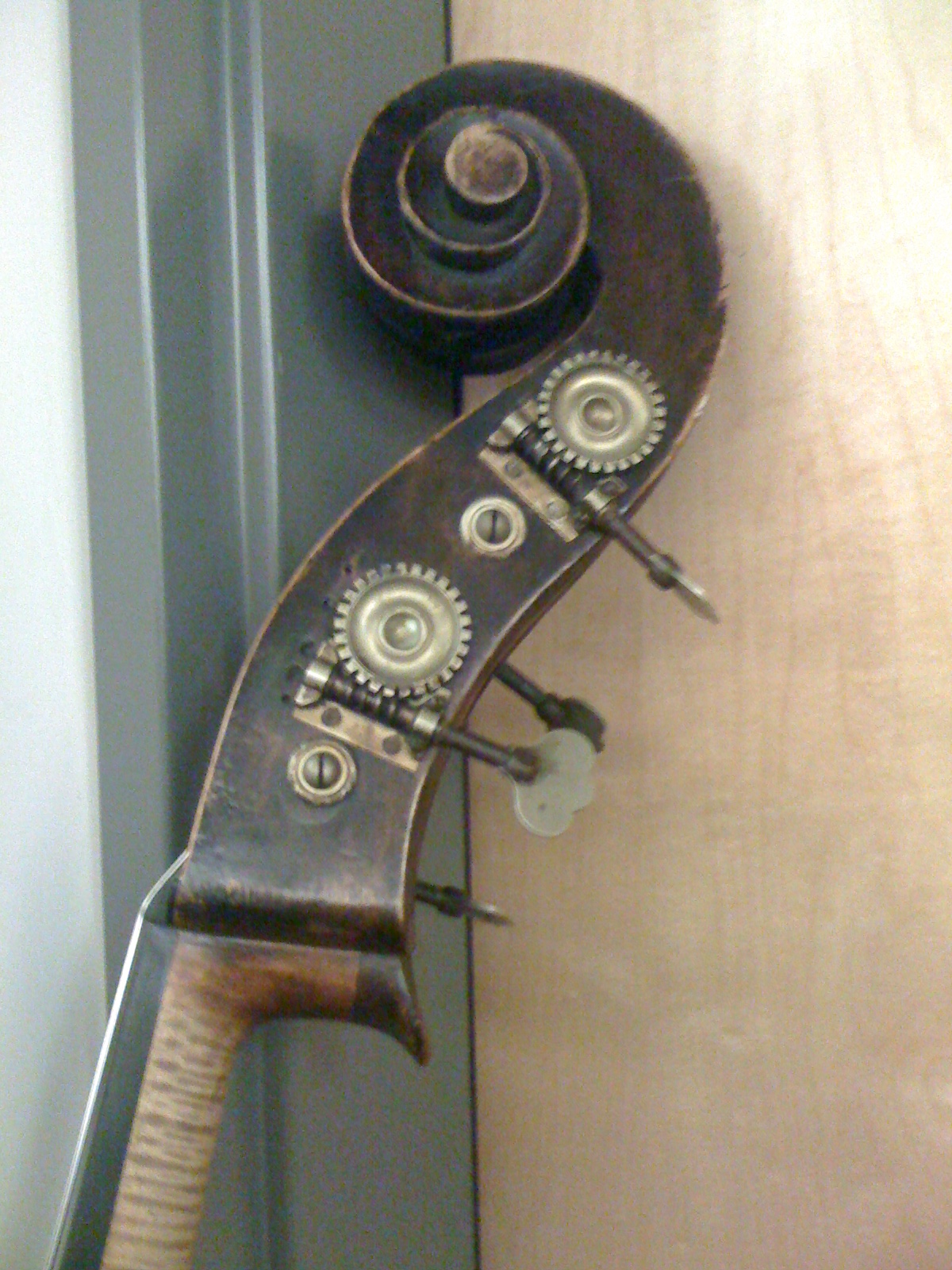The Scroll on the Bass above to my eye in no way resembles the work of the Bass. I doubt the bass and scroll are the same person.