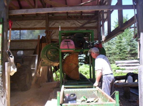 White Pine Log being cut in half to fit into the bandsaw. The log just barely fit, in fact we had to trim some off. Stickered to air dry I check in here every now and then to make sure I haven't missed anything important and saw Ken Smith's post on Mike Magee. I have been making guitars lately but am collecting wood and devising plans for my next couple double basses. I have some pine seasoning that I milled and a some photos that show the top wood being milled by my sawyer. White pine was good enough for some yankee makers and might be good enough for me. It is about ready to run some tests on weight, density, speed of sound, radiation ratio and a few other tests that might prevent me from making a BSO from it if it doesn't compare well to Bosnian or the other available spruce wood. I am copying a William Tarr that is in possession at the Guarneri House in Grand Rapids MI. It is a very pedestrian bass, designed by Tarr who was a player and prolific maker. I have always leaned "Italian" but this is a work-horse and that is what I am after. |