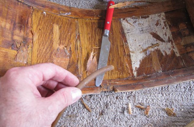 Here is a pic of glue removal on the one rib of the bass that we are discussing that had a been doubled with veneer and Gorilla glue. The vinegar also seems to lift stains/dirt.I'm not sure that it would be a good idea to leave the vinegar on for too long though in terms of possible wood damage .... |