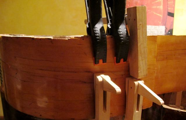 But getting a good glue joint on such a large surfaces is tricky, it is much more practical to fit and clamp softwood strips and/or linen Ã* la Bollbach |