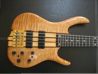 It was like the GN/BT we make now but without the 'G' which was the Graphite inlaid bars and a few other things as well. Sort of a stripped down version of the GN to sell at a lower price than the BT model of that period. !995 or 1996 rings a bell. Is the fingerboard Bubinga or Ebony? We also made an 'M' (eM) model back then as well. One folloed the other in time but both were the lower priced Neck Thrus, made only for a few years between the two models. A few years ago we came back out with a lower priced neck thru called the MS series basses. People always like spending less if they can but in reality, the cost to make less in not as great as the loss in features for the Bass. The MS is as low as we can go now on a bass which does have the Graphite inlaid neck, just like the GN/BT models do but is also stripped down. When you ala-a-carte a few of the GN features back up into the MS, you reach the same price so we suggest one buys the MS as it was intended, no options or the GN which for the difference is a better buy with all the added or rather 'non-subtracted' features in it. We made a few loaded up MS models not long ago with added Series/Parallel, 3 pc body with figured walnut and Black or Gold hardware as well as the standard chrome for that model. All of these were sold from stock except for one 6MS model with a body like a Black Tiger, S/P and black hardware. It almost sold last week but when the customer played a GN, srpung a little higher for it liking the GN more with the extra features and higher price as well. The MS has a 3pc neck which feels in-between the 5pc neck thru and the bolt-on 3pc. The MS has Morado FB as standard like a Bolt-on but with the Graphite Bars in the neck so it's a bit of a hybrid in materials design. Visually it's not as complex looking as the GN/BT model but sonically, we think it's a winner all the way. |