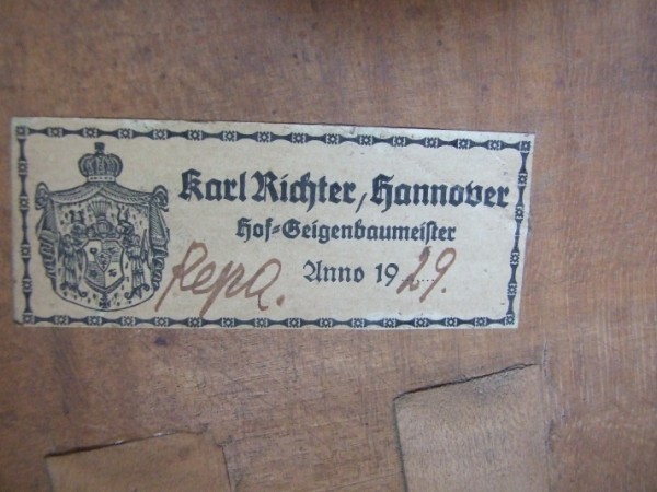 I got Stucher on the bottom label but never saw the S as an F. On the top label it looks like it says Berlin on the end at the top but, looks like two script small L's after it so the Berlinll is confusing. The first word looks like Repair abbreviated, 'Rep.' so assumed it was a repair label. There are 3 other lables as well from the 20th century and from known shops/makers in the Saxon area of Germany, near were the bass was for the last 100 years with its two last owners.