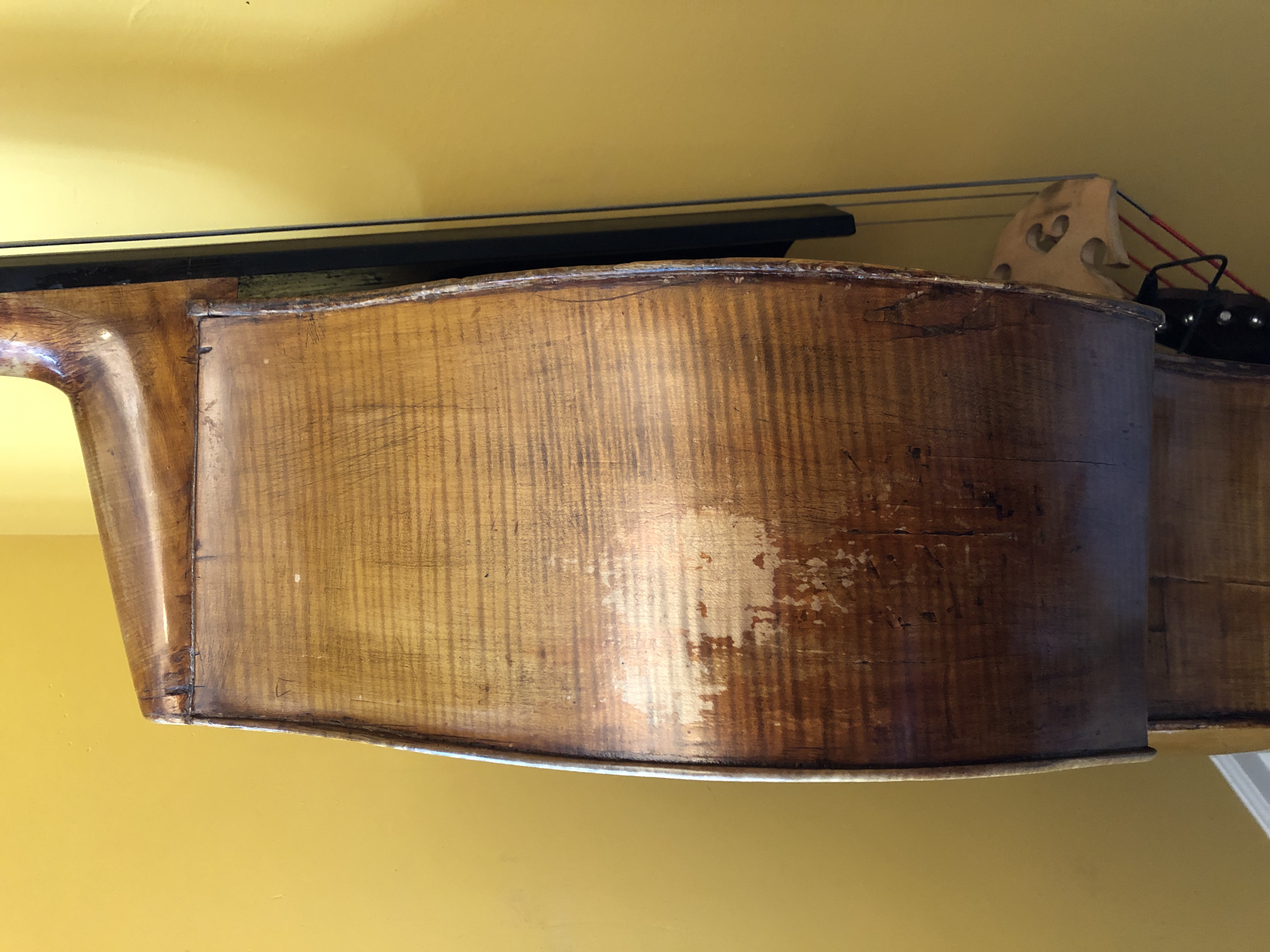 I looked at a few Neuner & Hornsteiner basses. Definitely a different look than this bass. Do you think this one could be 19th century? My pictures show some of the more unscathed areas of the bass. It definitely has had many repairs on the ribs and the lower bouts were actually replaced altogether.