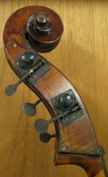 This Bass is clearly a Neapolitan/Gagliano School Double Bass from the 19th century attributed to Carlo Loveri. The F-holes are nearly identical to the 1873 Carlo Loveri we had a few years back. The Scroll/Pegbox however has been attributed to Fleta in Spain. Currently in Restoration.