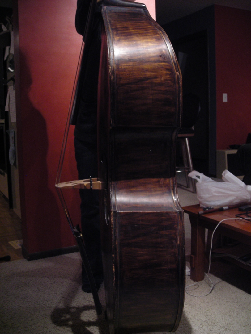 I found this bass on Craigslist a few weeks ago. It was listed as a Czech/Bohemian bass from the 1880's. $2500 OBO. I do indeed enjoy the sound of the bass and the feel of the neck. So, I bought it. It felt a bit impulsive and stupid, but I had been looking for a better bass for some time and this seemed like a decent instrument at a good price. Sure enough, I had it looked at back in St. Paul and it has some problems: A new fingerboard(I knew that before I bought it), and a cracked but in tact bottom block. I was quoted 3k. So, two questions: 1. Is the bass what I was told it is?(There is only a repair label from 1939 on the inside.) 2. Was this a good deal? Did I make a mistake? Should I turn this bass around and sell it to somebody else? Like I said, I do enjoy playing this bass, more than the one that I already have. But, I'm not interested and don't have the money to be over paying for this bass. Any insight will be much appreciated. Thanks. Aaron |