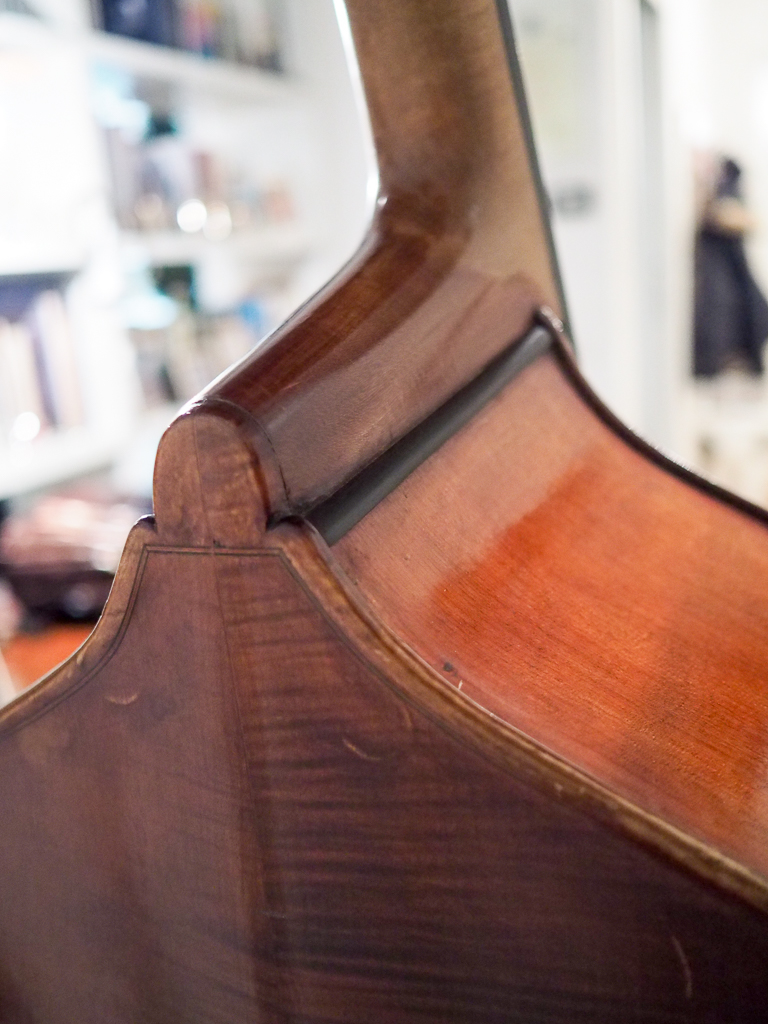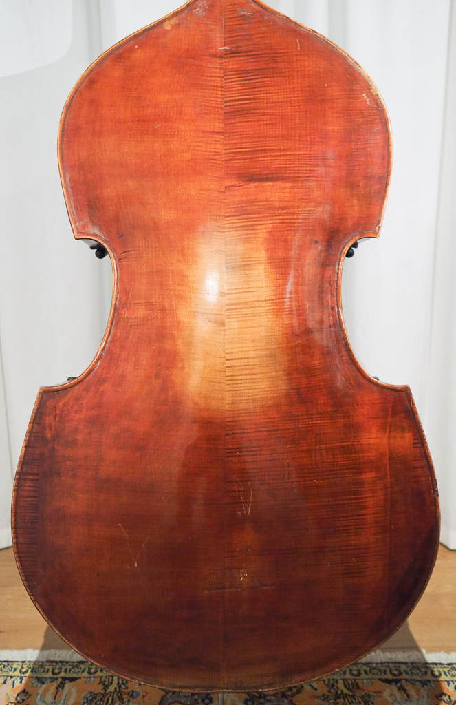 I would like to have some infos about my bass. I purchased it almost 20 years ago but I don't know much about its origin... Please let me know if any other specific pics are needed. Thank you in advance for any help! Dimensions: String length: 42 Total height: 73.5 Back length: 44 Upper bout: 20.5 Lower bout: 26.5 Rib: 8 |