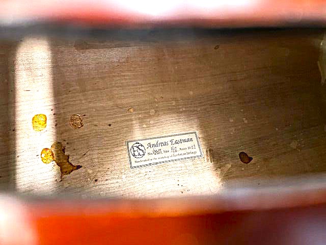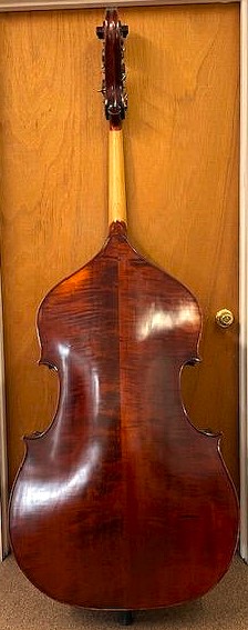 Measurements: String Length: 43" (can be reduced with false nut to 42" or less) Top/Back Length: 45 7/8" Upper Bout: 21 1/8" Middle Bout: 15 1/2" Lower Bout: 27 7/16" Ribs: 8 5/8 at Block, tapering to 6 1/2" at Neck (add 1/2" w/T&B) Top: Spruce with even grain. Back and Ribs: flamed Maple Neck/Scroll: plain grain Maple Varnish: beautiful shaded red-brown over gold. |